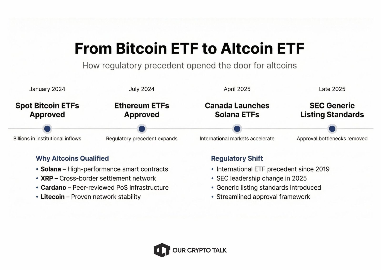 The Altcoin ETF idea did not appear overnight. It emerged from the success of Bitcoin and Ethereum ETFs.
