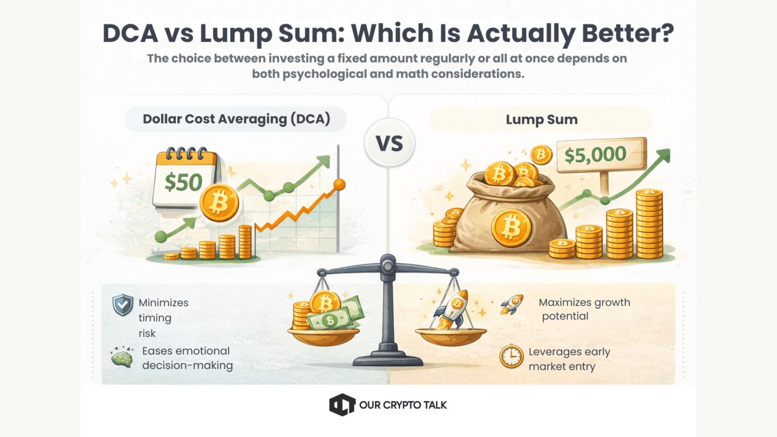 Mathematically, this is often true. Studies such as those from Vanguard show lump sum investing outperforms DCA about two-thirds of the time in traditional markets. The reason is straightforward. Capital invested earlier has more time to grow.