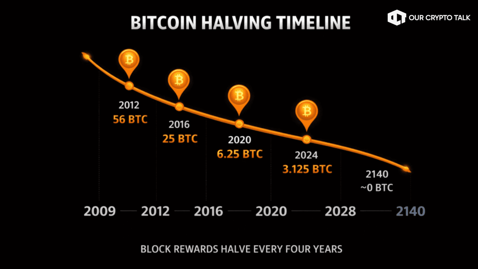 Bitcoin follows a simple rule: every ~4 years, the protocol halves the block reward—an event known as the halving.
