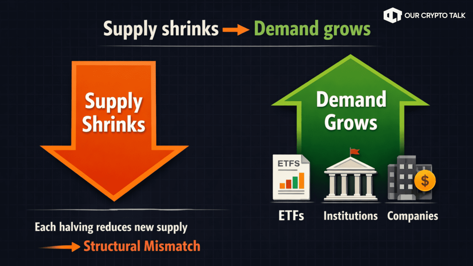 The key point here is not speculation or hype. It comes down to simple arithmetic. Each halving reduces new supply, permanently lost coins shrink the available supply further, and demand continues to grow through multiple independent channels. Together, these forces create a structural mismatch between supply and demand that Bitcoin’s design enforces, not short-term market cycles.