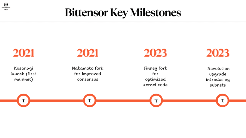 The Revolution upgrade in October 2023 transformed Bittensor into a modular architecture with independent subnets, each specializing in specific AI tasks.