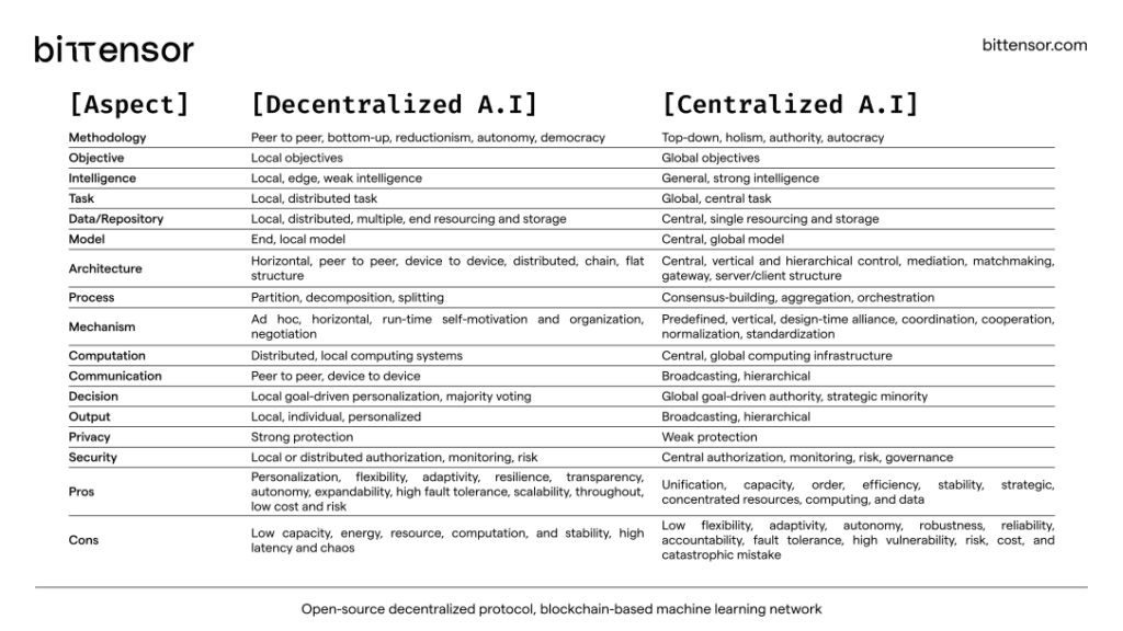 Bittensor’s main advantages over centralized AI (like GPT-4 or Google Gemini):