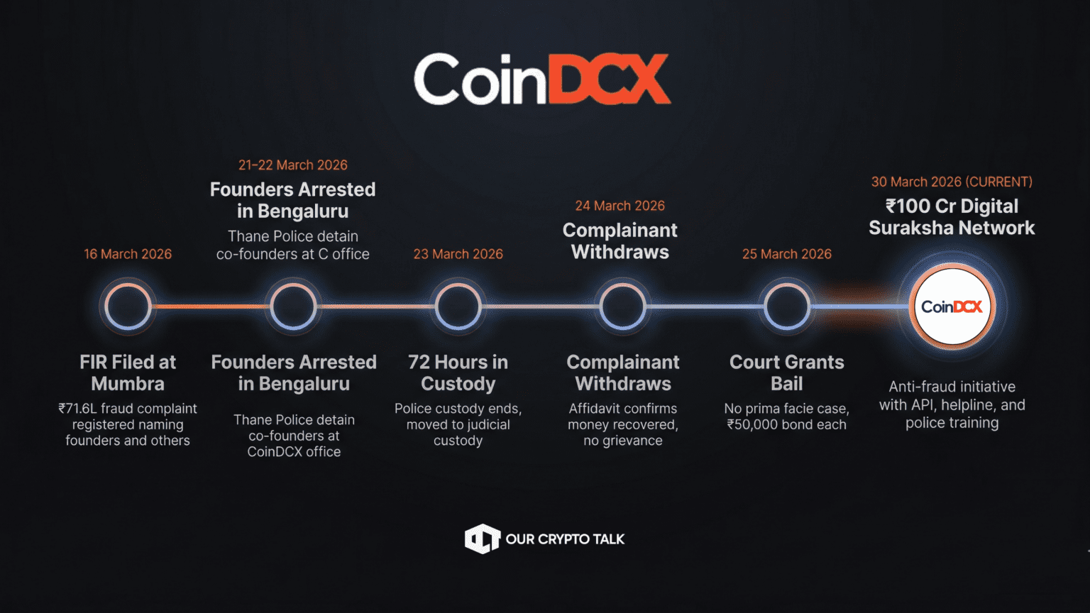 Initially, officers questioned the founders at Bellandur Police Station in Bengaluru. After that, they remanded them to police custody until 23 March, followed by judicial custody. For 72 hours, two of India’s most recognized crypto entrepreneurs sat in custody more than 1,000 kilometres from home. All of this happened over a fraud they had nothing to do with.