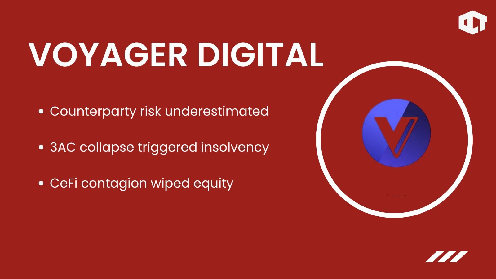Voyager entered the market in 2018 as a retail-focused crypto brokerage offering trading, lending, and yield products. It grew quickly during the 2021 bull market and used the VGX token to incentivize users. However, Voyager had heavy exposure to Three Arrows Capital. When 3AC collapsed in 2022, Voyager suffered catastrophic losses.