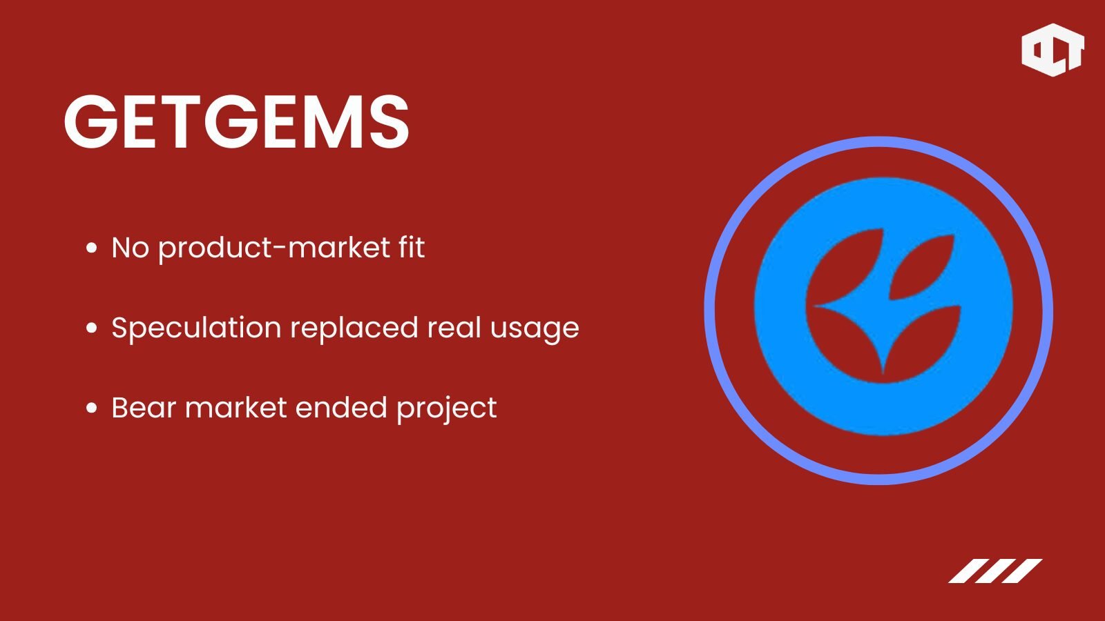 Exchanges delisted GEMZ, and community activity disappeared. The project quietly dissolved. GetGems represents the many utility-token apps that failed because speculation replaced real demand. Bear markets exposed the lack of product-market fit and ended the experiment.