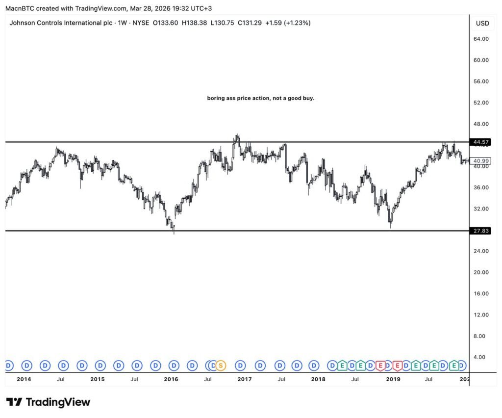 let me show you a chart that did NOTHING, for 5+ years. same boring sideways range, no break in market structure, just sideways boring chop. YOU DO NOT WANT TO BUY CHARTS THAT LOOK LIKE THIS, ITāS BETTER TO TAKE YOUR MONEY GO TO VEGAS AND PUT IT ALL ON BLACK,