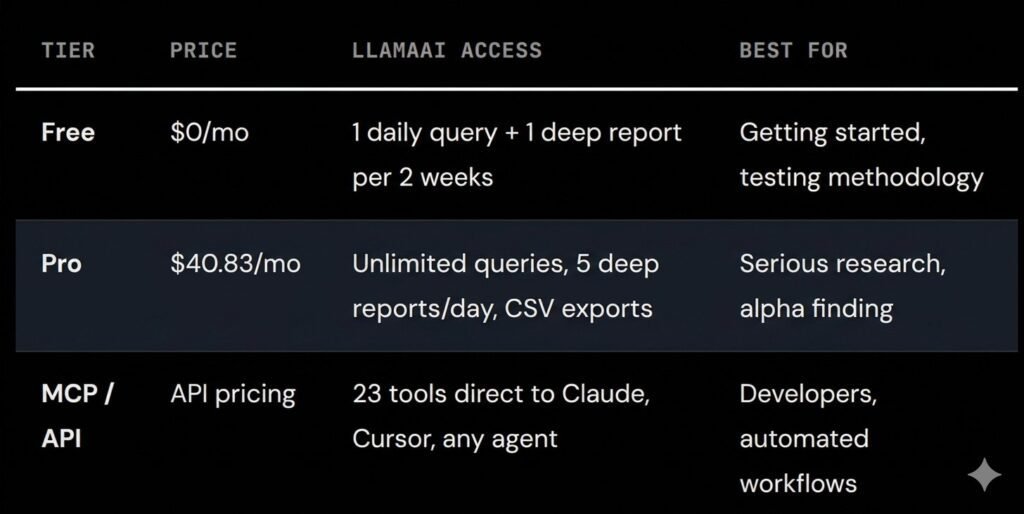 One good trade thesis pays for months of subscription. The Pro tier is table stakes for serious research.