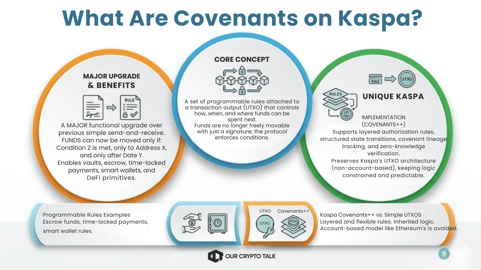 With covenants, that changes. Kaspa can now support smart wallets, vaults, escrow flows, time-locked payments, conditional transfers, and other rule-based spending mechanisms. These are the core building blocks needed for more advanced on-chain applications, including early DeFi primitives.