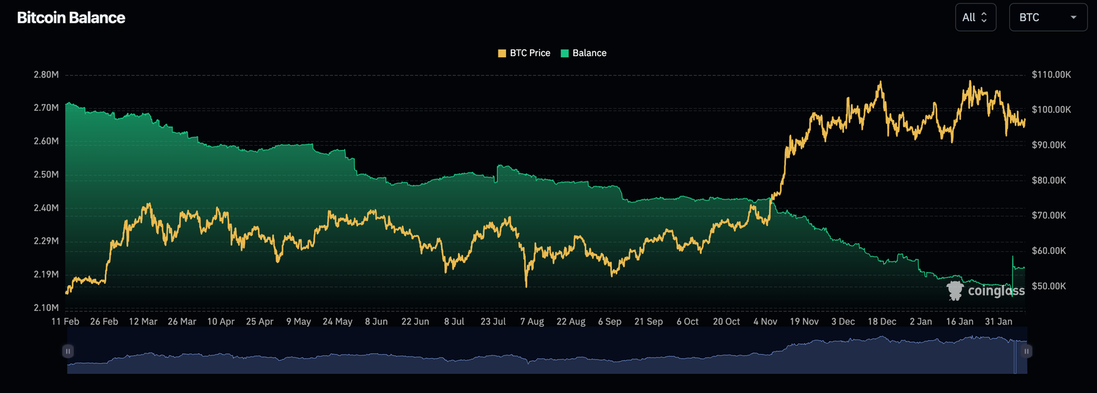 One of the most crucial metrics for Bitcoin investors is the amount of BTC held on centralized exchanges. This indicator helps determine whether investors are in an accumulation phase (bullish) or preparing to sell (bearish).