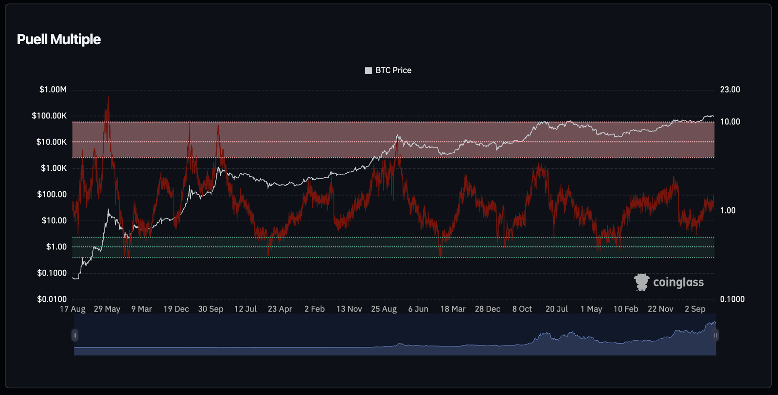 Puell Multiple= Daily BTC Mined×BTC Price / 365-Day Moving Average of Miner Revenue