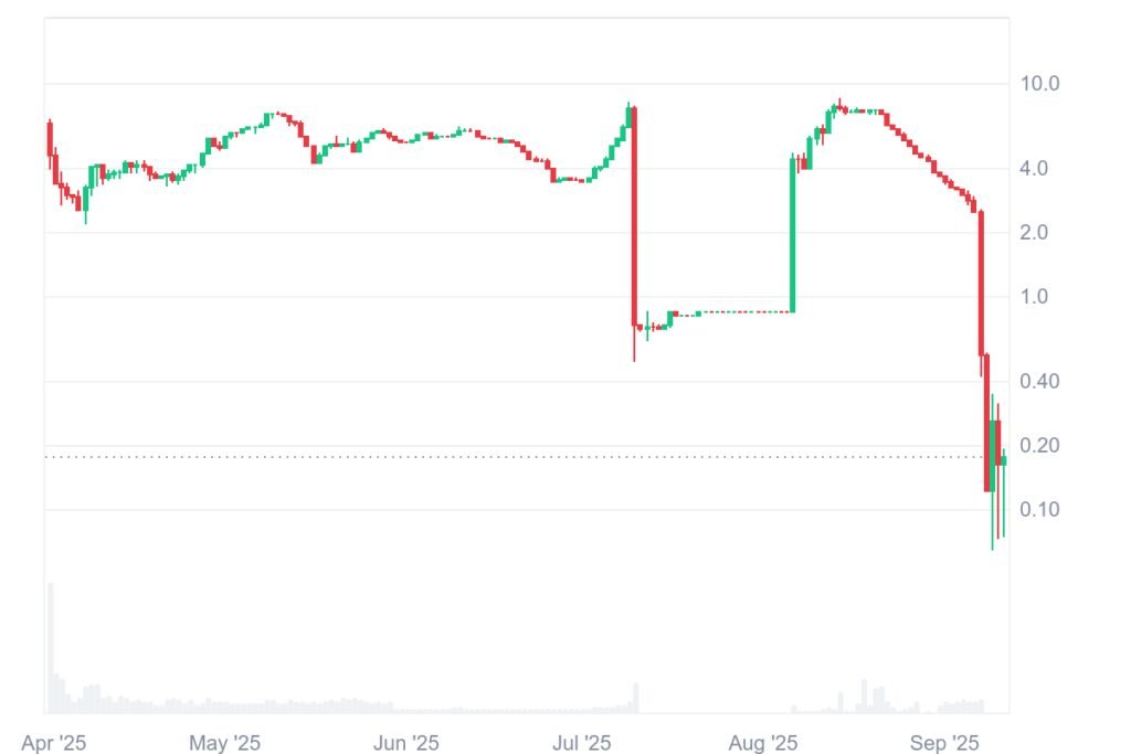 The shutdown news triggered a sharp 80% drop in $K’s price. It plummeted from $2.40 to under $0.50 in a single day. By early September, $K’s market cap had fallen to just $1 million, down from a $14.5 million August peak.