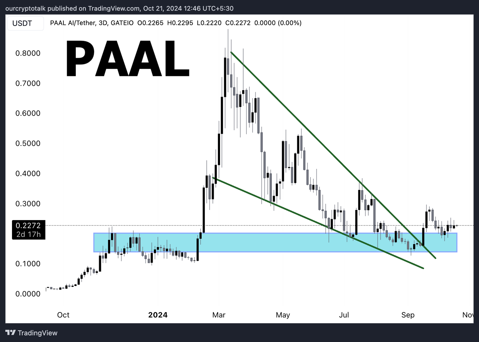 Q3 has been a mixed one for $PAAL. The price dropped from 35 cents to 15 cents in September but there has been a short term positivity for the price action. $PAAL is currentlyu above 2024 breakout levels and at a 4X potential towards its ATH