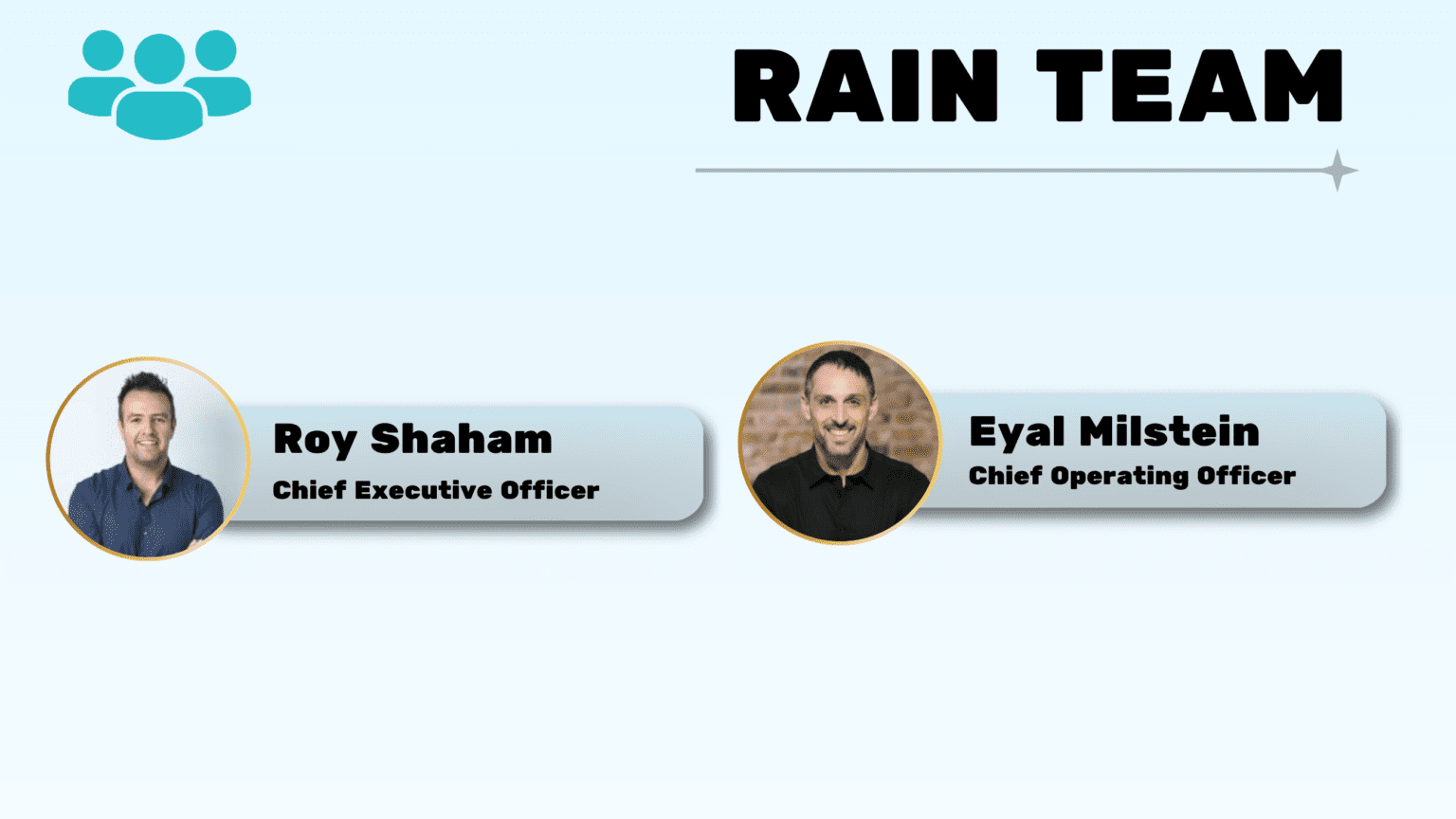 Rain Protocol is built by a low-profile team. Roy Shaham leads as CEO and Eyal Milstein as COO. The technical direction comes from engineers, including Muhammad Wasif on core infrastructure. The focus is clearly on product delivery rather than public visibility.