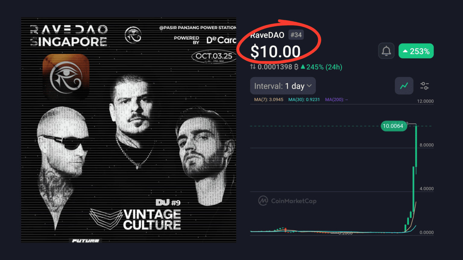 Market cap jumped from low hundreds of millions to approximately $2.5 billion on a circulating basis. The fully diluted valuation approached $10 billion at the peak. $RAVE climbed to the #34 spot on CoinMarketCap.