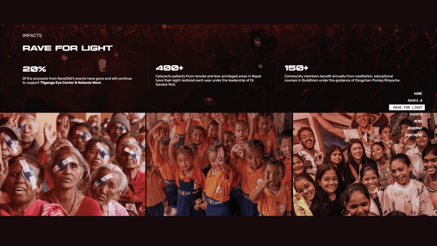 The revenue model is worth noting because it sets RaveDAO apart from most tokens that run purely on speculation. The project claims verified event revenue of ~$1.3 million in 2024, with projections of roughly $7 million for 2026. A portion of that revenue funds quarterly token buybacks and burns. The “Rave for Light” philanthropic arm has funded 400+ cataract surgeries in Nepal and over 150 meditation programs in the U.S.