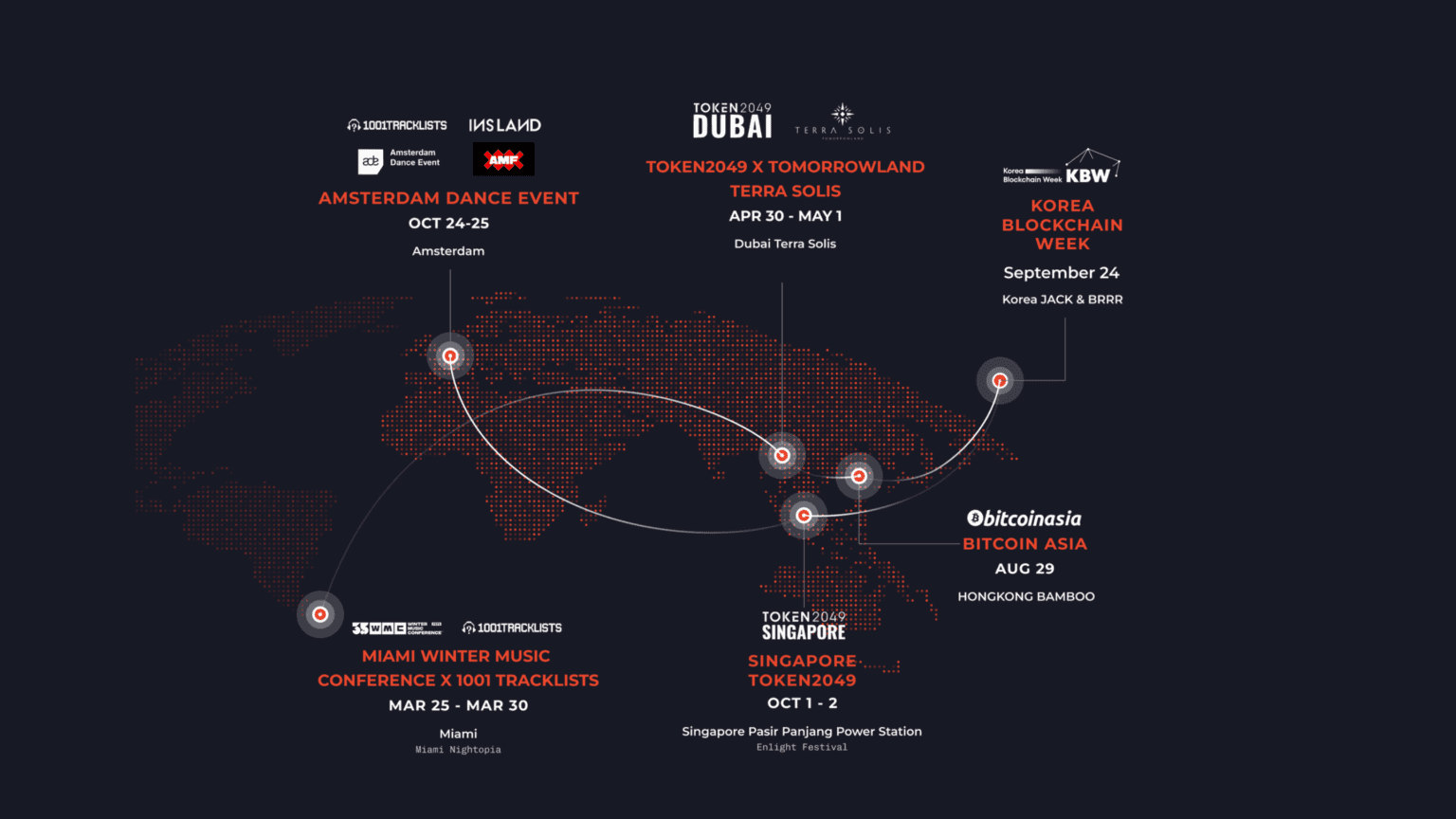 The origin story starts small. A 200-person crypto afterparty at Devcon Istanbul in late 2023. From there, the project scaled across Singapore, Amsterdam, Dubai, Bangkok, and Miami, eventually crossing 100,000 total attendees and securing partnerships with 1001Tracklists, AMF, and Warner Music. A Lisbon Dance Summit co-hosting slot is scheduled for late April 2026.