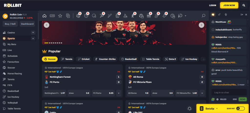 The casino remains Rollbit’s flagship. It offers hundreds of provably fair slots, roulette, and card games, with transparent odds verified through cryptographic hashes. Roughly 10% of casino revenue funds hourly RLB buybacks. Every spin or wager contributes micro-revenue that sustains token deflation.