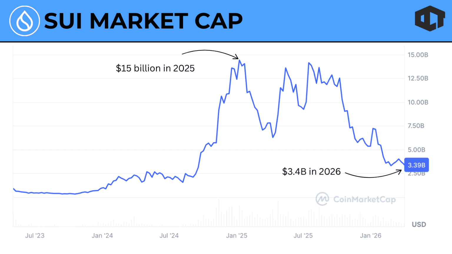 Sui was once one of the most hyped Layer 1 blockchains in crypto. It promised speed, scalability, and a new execution model that could rival established networks. Backed by top-tier investors and positioned as a “Solana killer,” it captured attention quickly. Fast forward to 2026, and the picture looks very different. The token has dropped over 80 percent from its all-time high, on-chain activity has cooled, and token supply continues to expand every month.