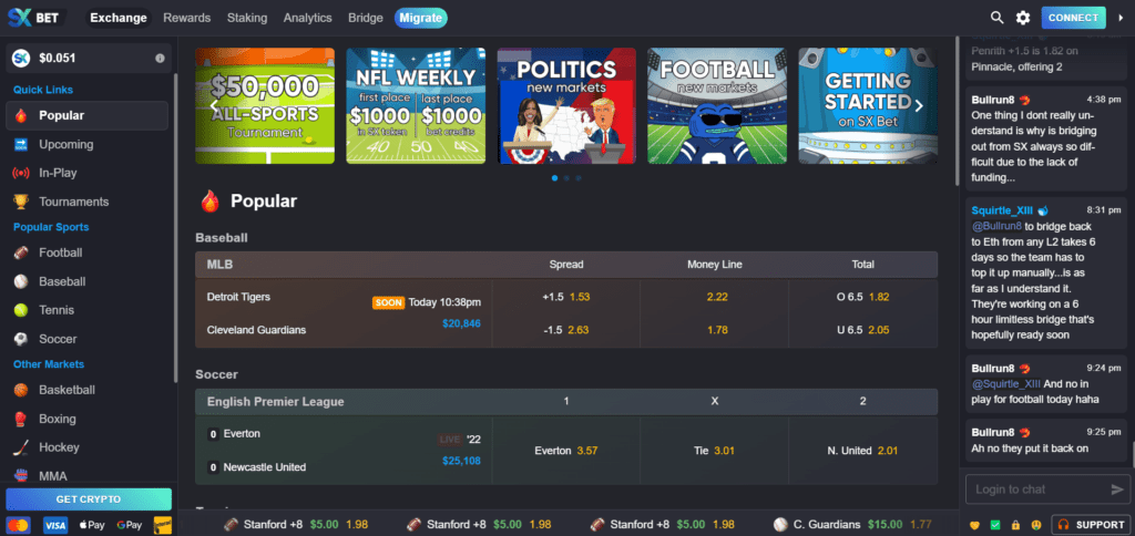 SX Bet offers a decentralized sports betting platform built on blockchain technology, ensuring transparency, low fees, and fair gameplay.