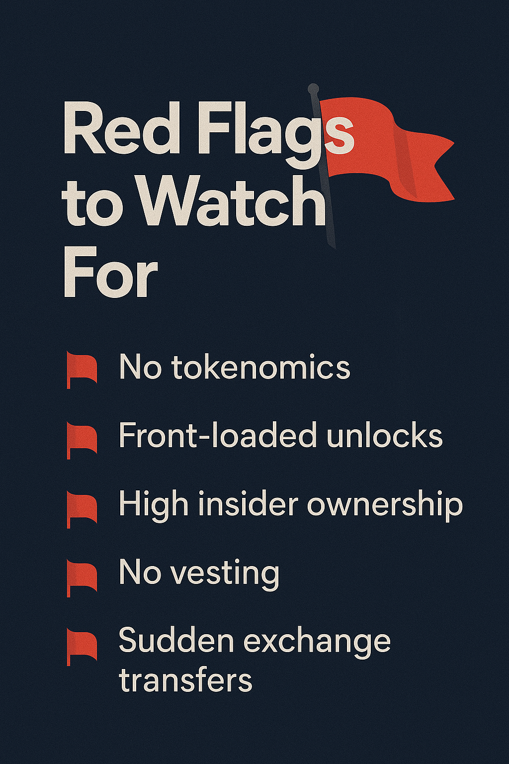 One red flag to watch for is when team tokens are unlocked before product milestones are reached. Another is if too much of the circulating supply is concentrated among insiders — giving them power to manipulate prices.