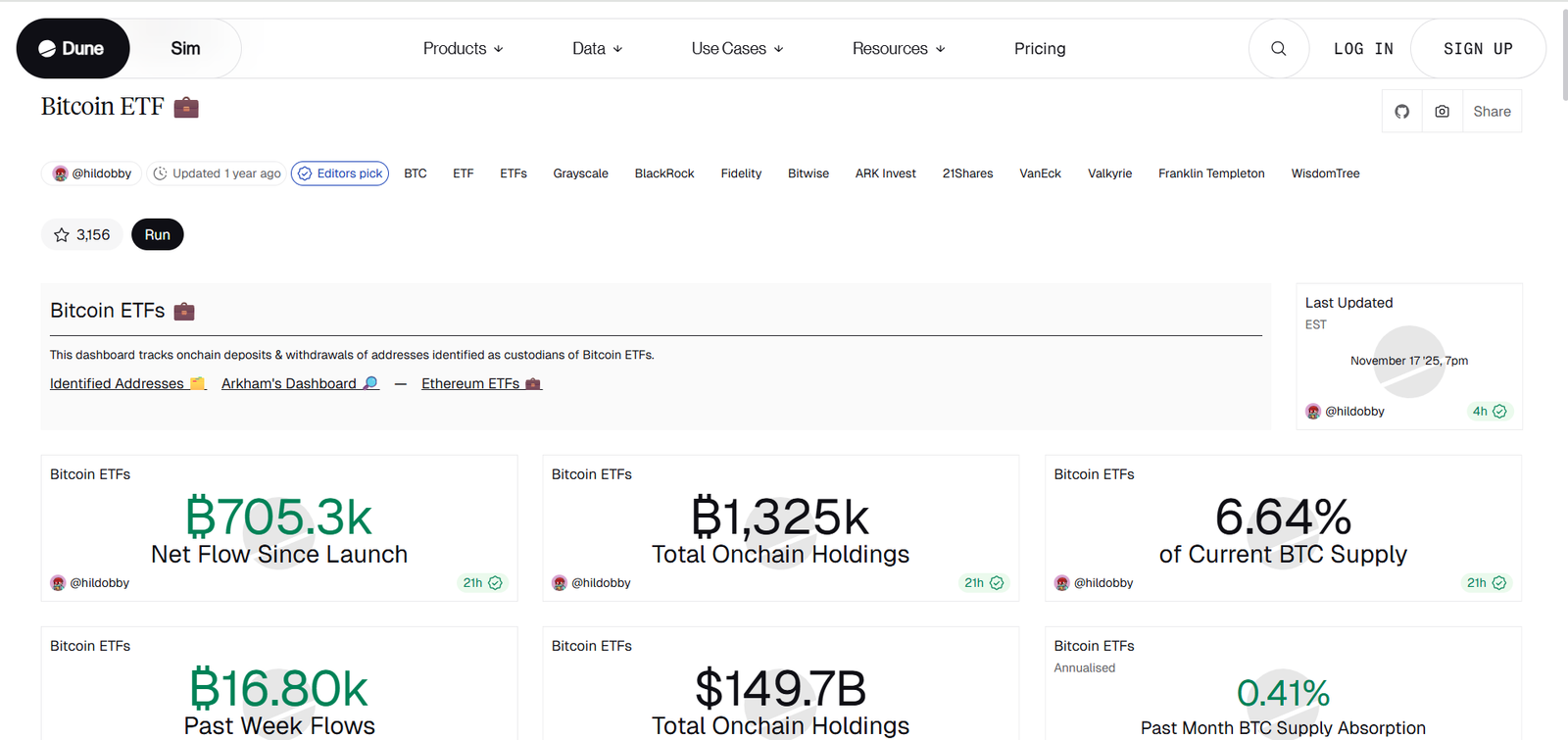 This dashboard is essential for anyone analyzing Bitcoin’s supply dynamics. Large ETF inflows reduce circulating supply, contributing to structural price pressure. AUM growth reveals institutional appetite, while supply absorption metrics show how ETFs reshape Bitcoin’s liquidity landscape. As traditional finance and crypto converge, this dashboard stands at the center of macro crypto analysis.