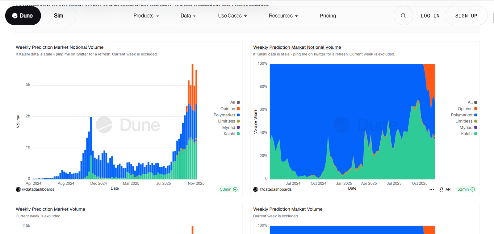 Prediction markets have become an integral part of political forecasting, risk modeling, and sentiment tracking. This dashboard integrates data from platforms like Polymarket and Kalshi.