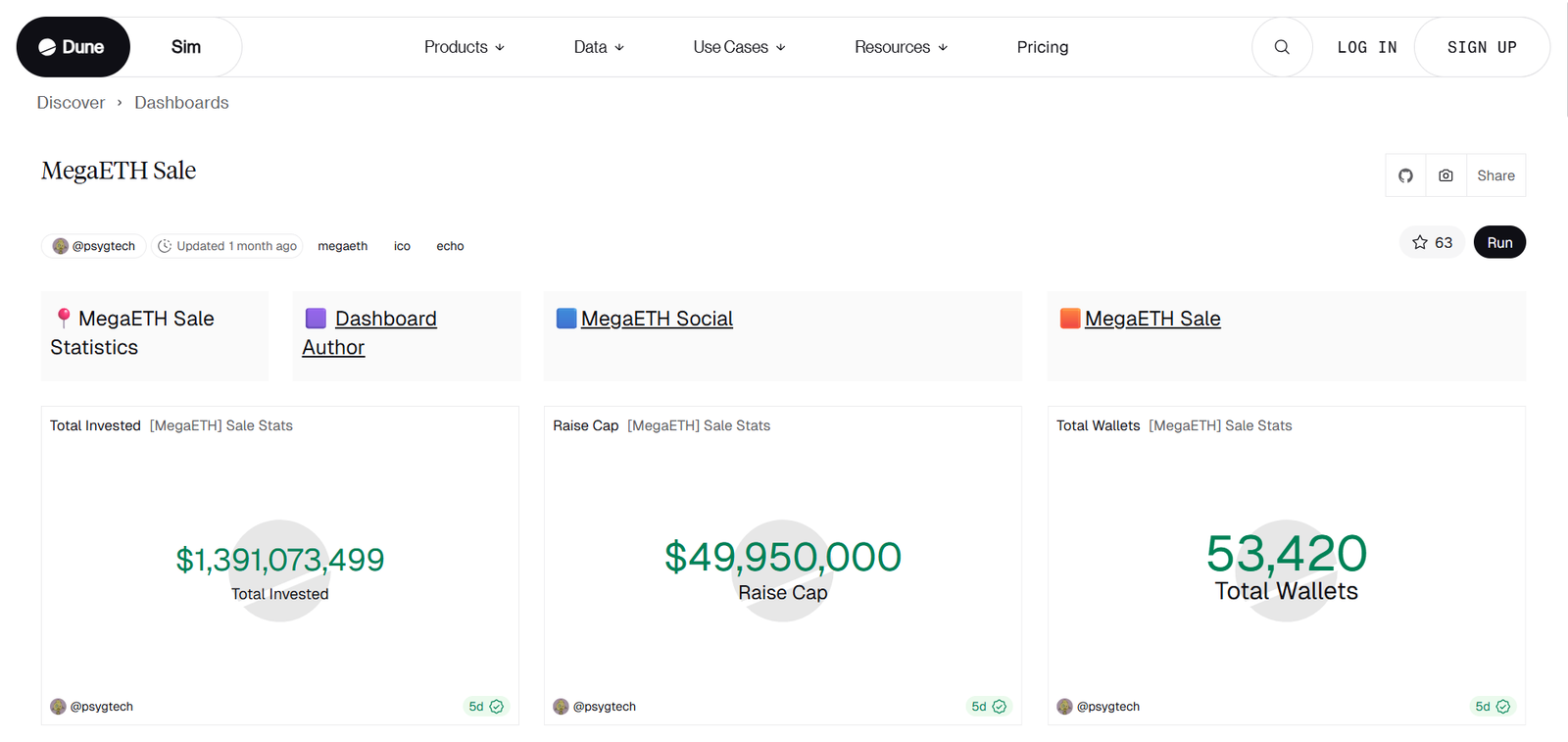 MegaETH is another highly anticipated token sale, and this dashboard tracks contributions, wallet segments, and long-term locked positions.