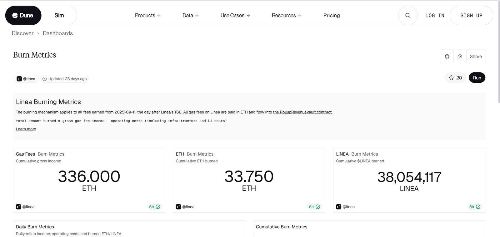 This dashboard analyzes Linea’s burn and fee mechanisms, tracking the token’s economic health and sustainability.