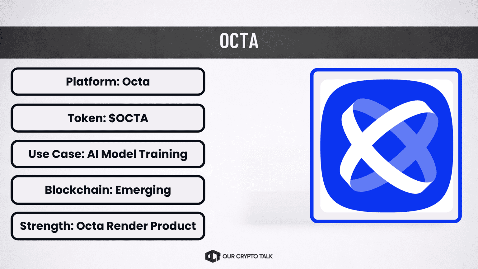 Octa ($OCTA) is a decentralized GPU compute network that provides distributed computing power for AI, machine learning, and high-quality rendering workloads. The project enables users to access on-demand GPU capacity through its flagship product, OctaRender, positioning itself as an emerging alternative to traditional centralized cloud computing services.