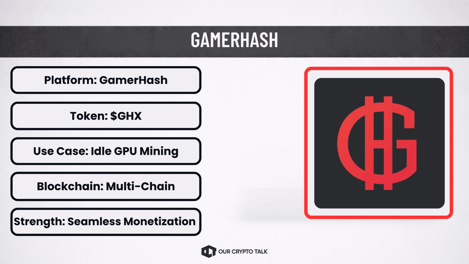 GamerHash ($GHX) is a decentralized GPU monetization platform that allows users to earn rewards by contributing idle graphics processing power for crypto mining and compute tasks. The network enables gamers and everyday users to passively generate income while their hardware runs background workloads, effectively linking the gaming ecosystem with decentralized compute and crypto incentives.