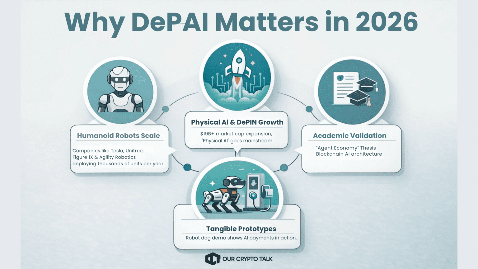 Academic research is also beginning to formalize the thesis. The February 2026 arXiv paper “The Agent Economy”proposed a five-layer architecture for autonomous AI agents operating on blockchain networks, directly reinforcing the machine-economy narrative that DePAI is built around. Therefore, it explicitly frames machines as economic peers capable of identity, settlement, and governance, which strongly overlaps with the DePAI stack.