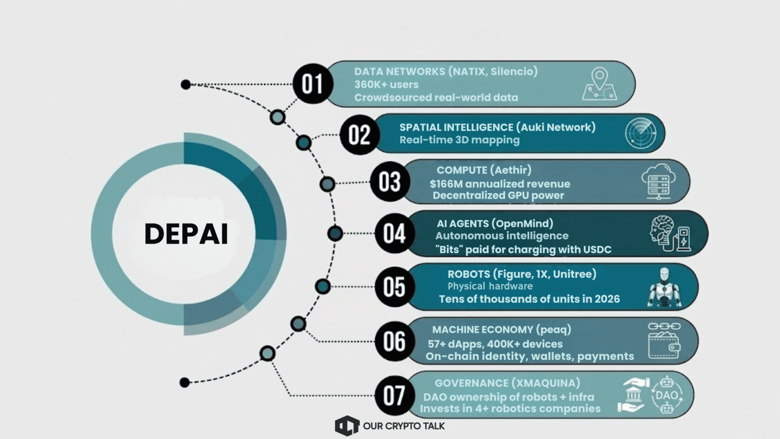 Key DePAI projects across machine economy, robotics, compute, and data infrastructure