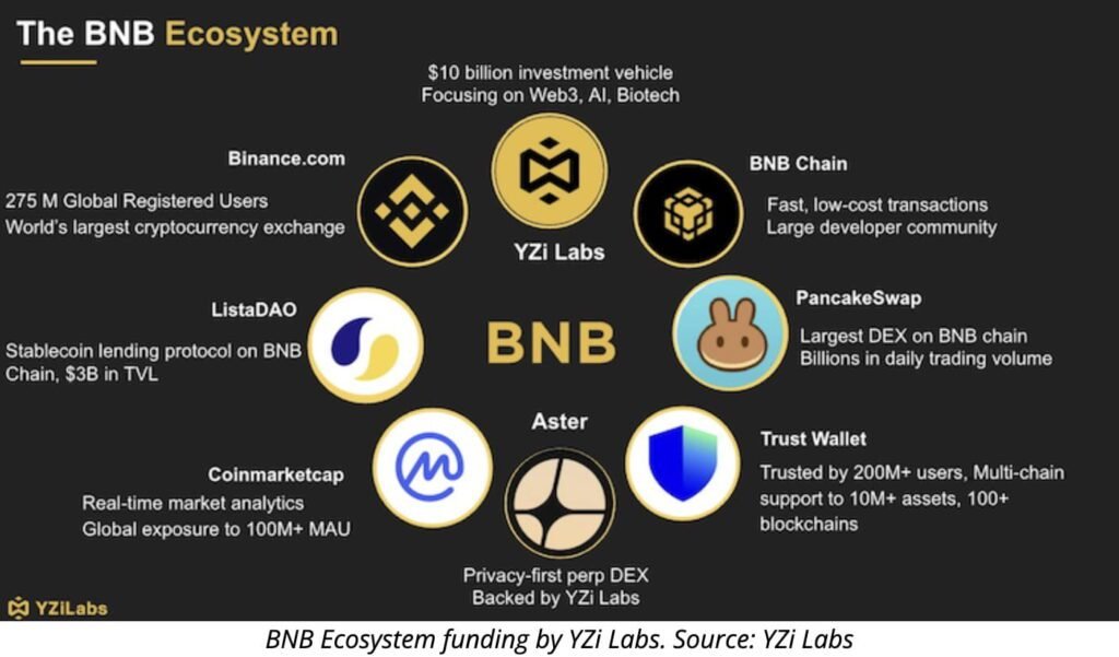 YZi Labs operates independently but remains closely connected to Binance’s ecosystem. It manages a $10 billion venture fund focused on Web3, artificial intelligence, and biotechnology. Although separate in structure, it still aligns with key projects in the Binance network, especially the BNB Chain.