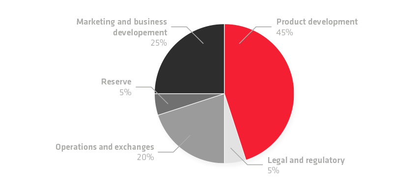 The $GHX token distribution is shown as above with the majority chunk of 45% being reserved for Product development.