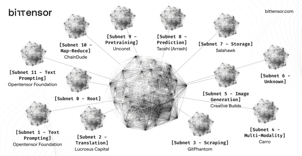 Bittensor subnets form the backbone of the Bittensor network, a cutting-edge platform built for fostering a decentralized landscape for machine learning models and AI services. These subnets play a pivotal role in structuring the network efficiently, facilitating seamless collaboration among diverse nodes.