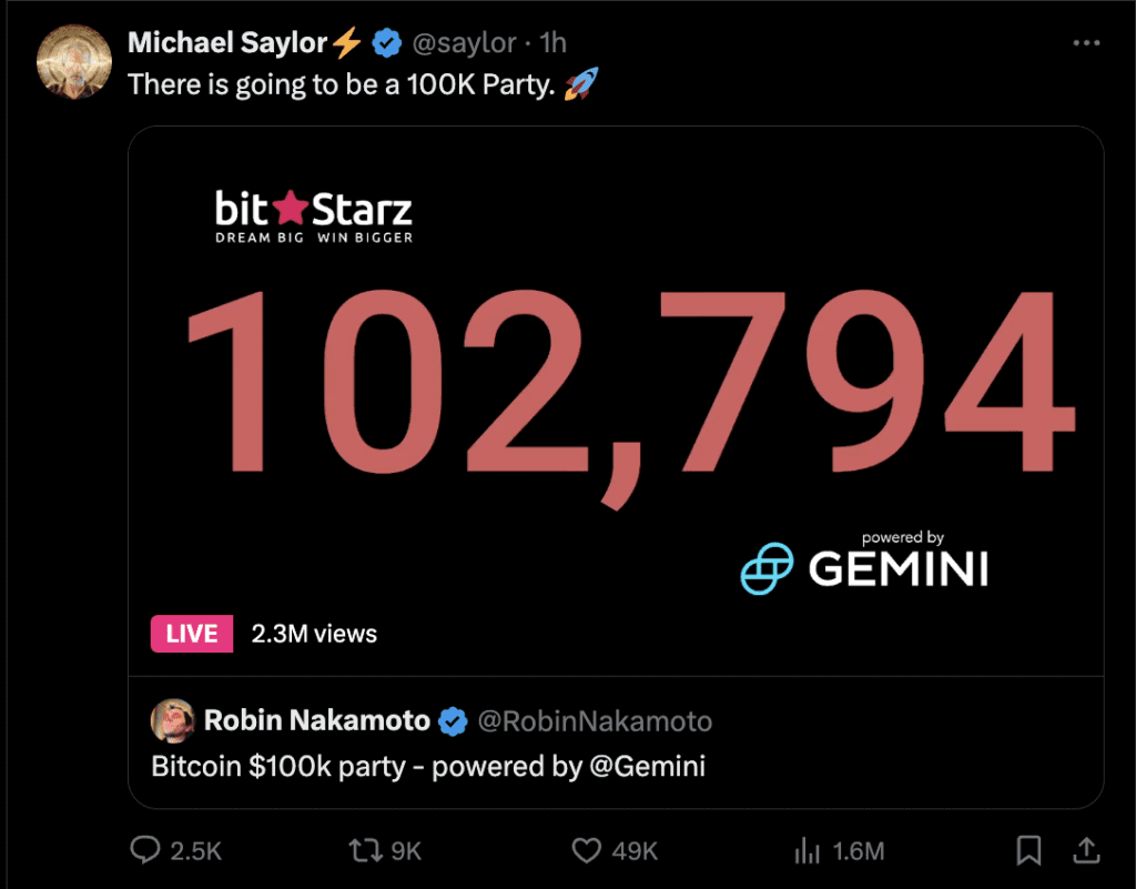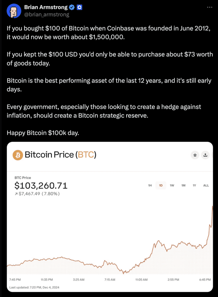 “Bitcoin at $100,000 is a testament to its resilience and growing acceptance,” said Mike Novogratz, CEO of Galaxy Digital. He attributed the surge to institutional interest, advancements in tokenization, and clearer regulatory pathways.
