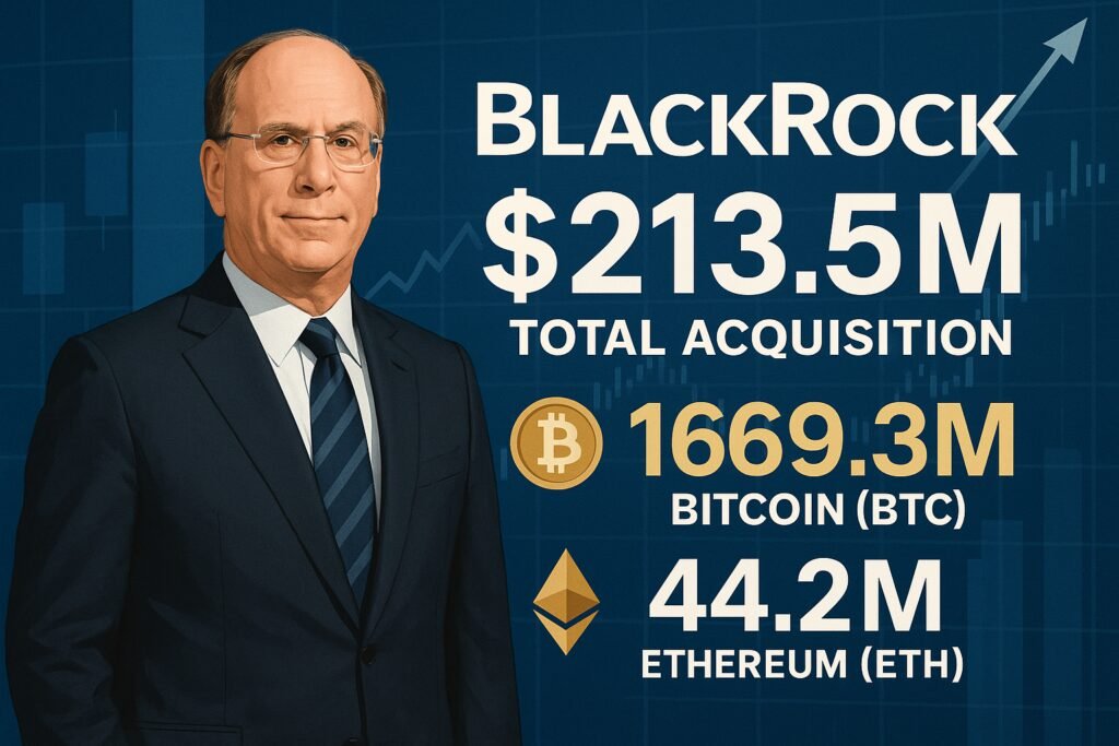 BlackRock crypto acquisition of $213.5M in BTC and ETH signals growing institutional adoption and long-term digital asset growth.
