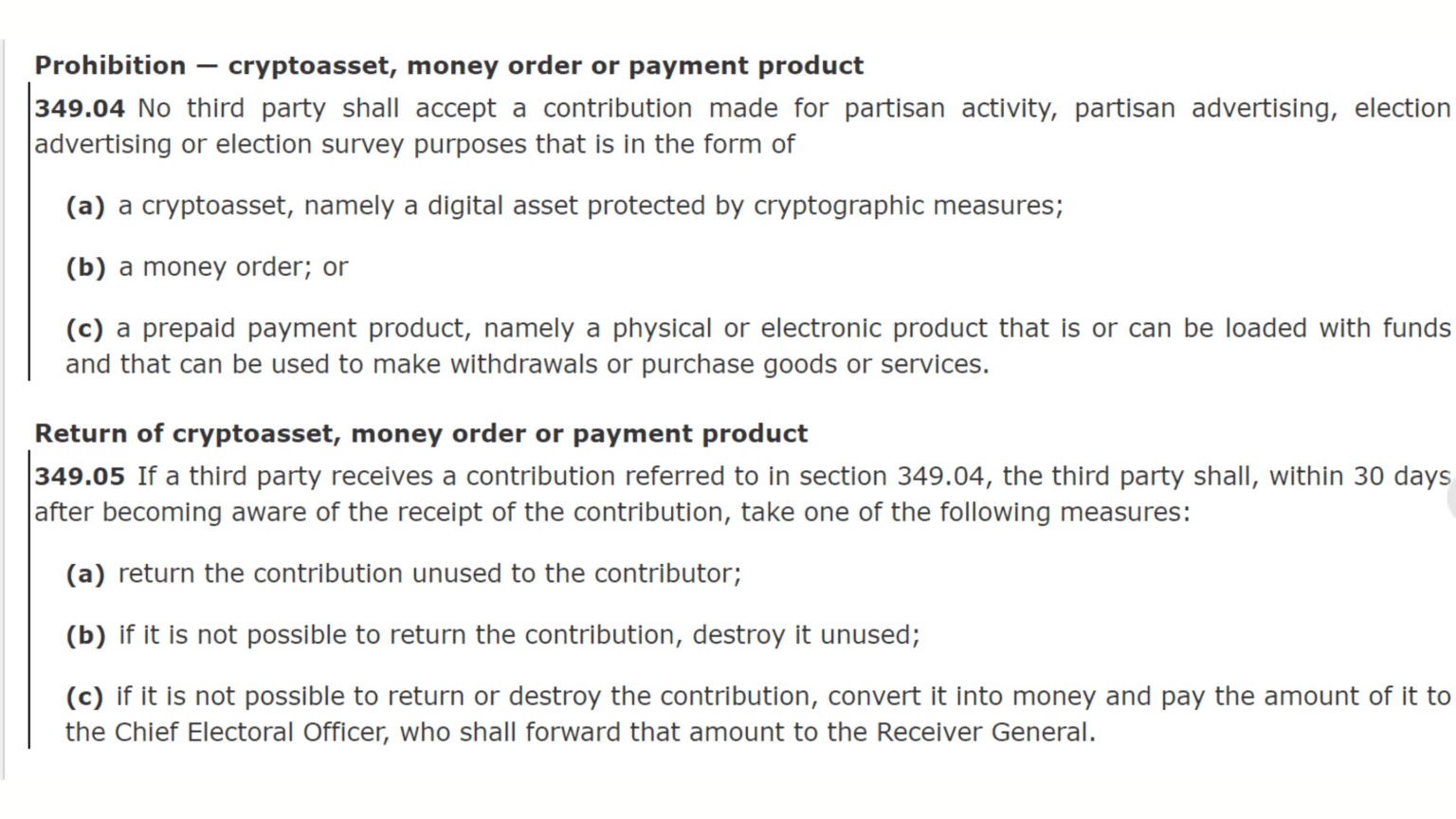 Canada Moves to Ban Crypto Donations in Federal Elections Reform Bill