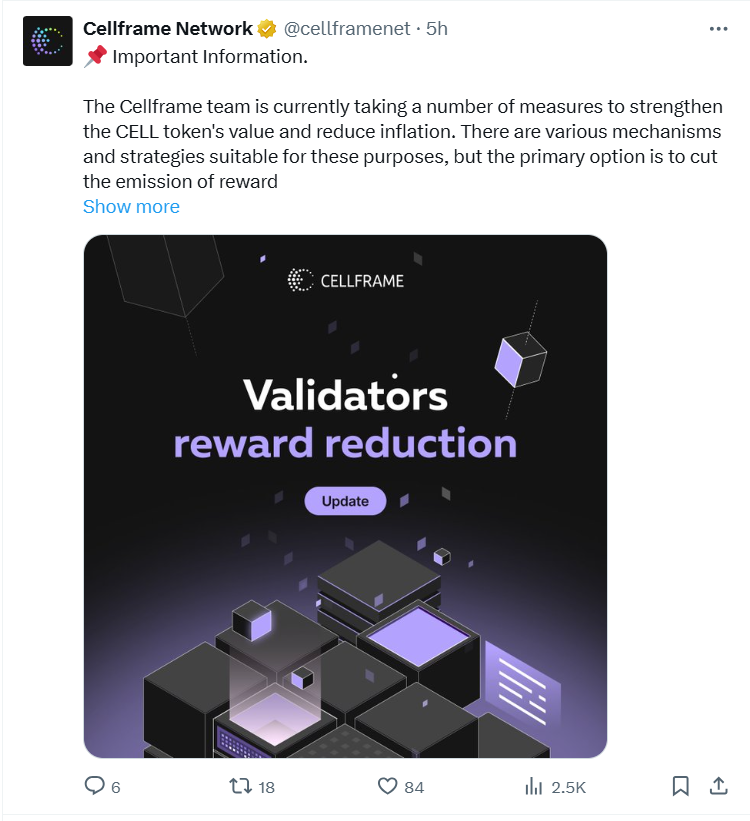 September 25, 2025 – Cellframe Network has unveiled the Cellframe halving, a 50% cut in validator rewards aimed at combating persistent token inflation and strengthening the value of its native CELL token. The move mirrors Bitcoin’s iconic halving events, positioning Cellframe as a forward-looking project prioritizing sustainable tokenomics in a competitive blockchain landscape.