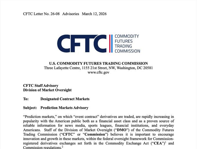 🇺🇸 JUST IN: The CFTC has issued long-awaited guidance on prediction markets. TLDR: • Exchanges can self-certify prediction market contracts under existing derivatives rules • Platforms must ensure markets are not easily manipulated and maintain surveillance • Insider trading https://t.co/raCOCDjroE