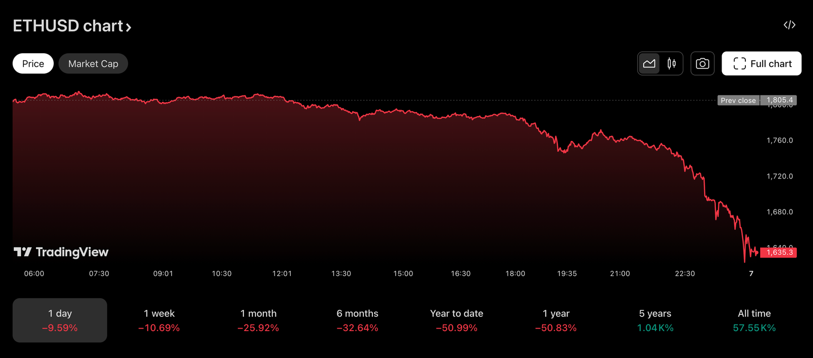 The crypto market took a severe hit late Sunday night, as Bitcoin is below $80,000 and Ethereum fell under $1,700. Big crash to come?
