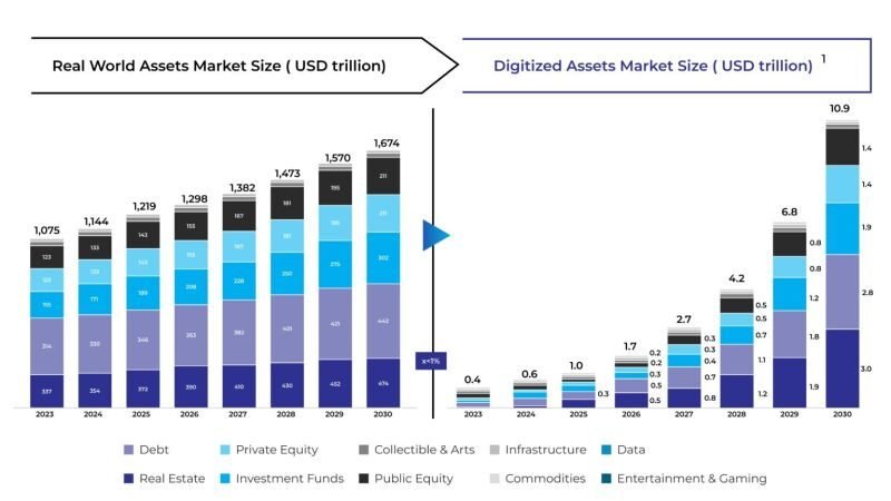 The suite spans traditional markets like the S&P 500 and NASDAQ, commodities like gold and oil, and even emerging-market FX pairs. By removing trust assumptions, DIA is promises to position itself as a key enabler of the RWA boom. Analysts are projecting the tokenized asset sector to hit $10T by 2030.