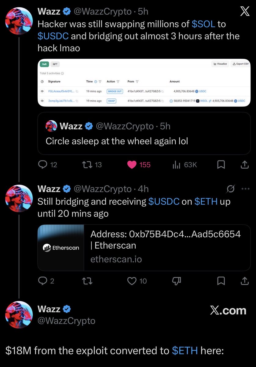 @circle @jerallaire Circle was asleep while many millions of USDC was swapped via CCTP from Solana to Ethereum for hours from the 9 figure Drift hack during US hours. Value was moved and nothing was done yet again. Comes days after you froze 16+ business hot wallets incompetently which is still https://t.co/T0Xwg1HIfO