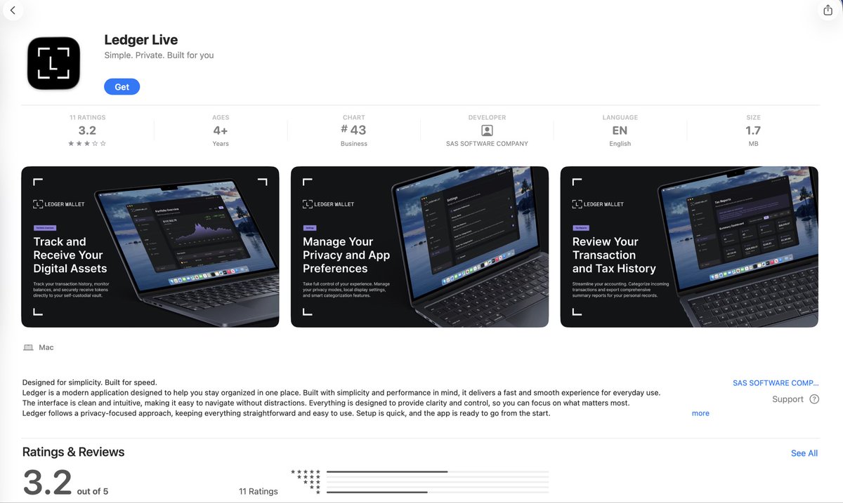 He was setting up a new Mac and searched the App Store for “Ledger Live.” That is the official companion software for Ledger hardware wallets. The app he found looked identical to the real thing.