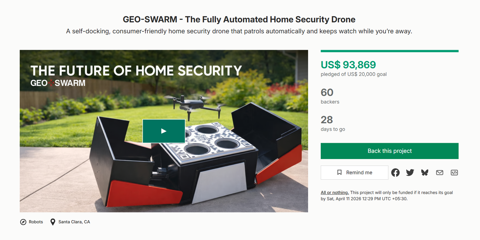 The GEODNET GEO-SWARM Kickstarter campaign launched on March 10, 2026, with an initial funding goal of $20,000. Within a few days, the campaign raised more than ~$94,000, reaching over 400 percent of its target.