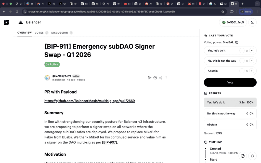 Consider keeping a dedicated wallet for governance activities. This reduces the risk to your main holdings if you accidentally interact with a wrong contract or malicious link. A separate wallet keeps your voting tokens isolated and safer.