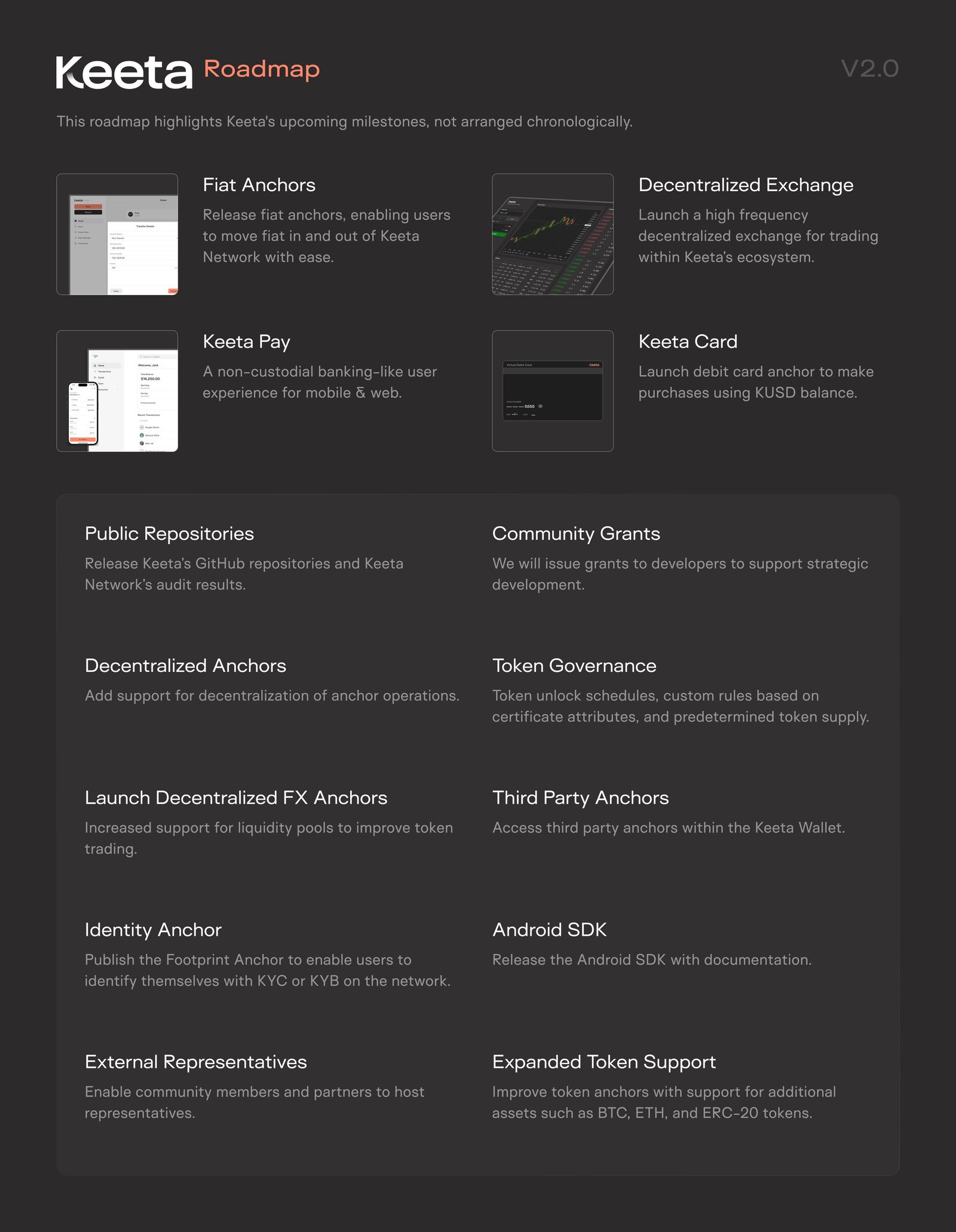 Keeta reveals its V2.0 roadmap with fiat anchors, DEX, and governance tools, sparking debate over non-linear vs chronological roadmaps.