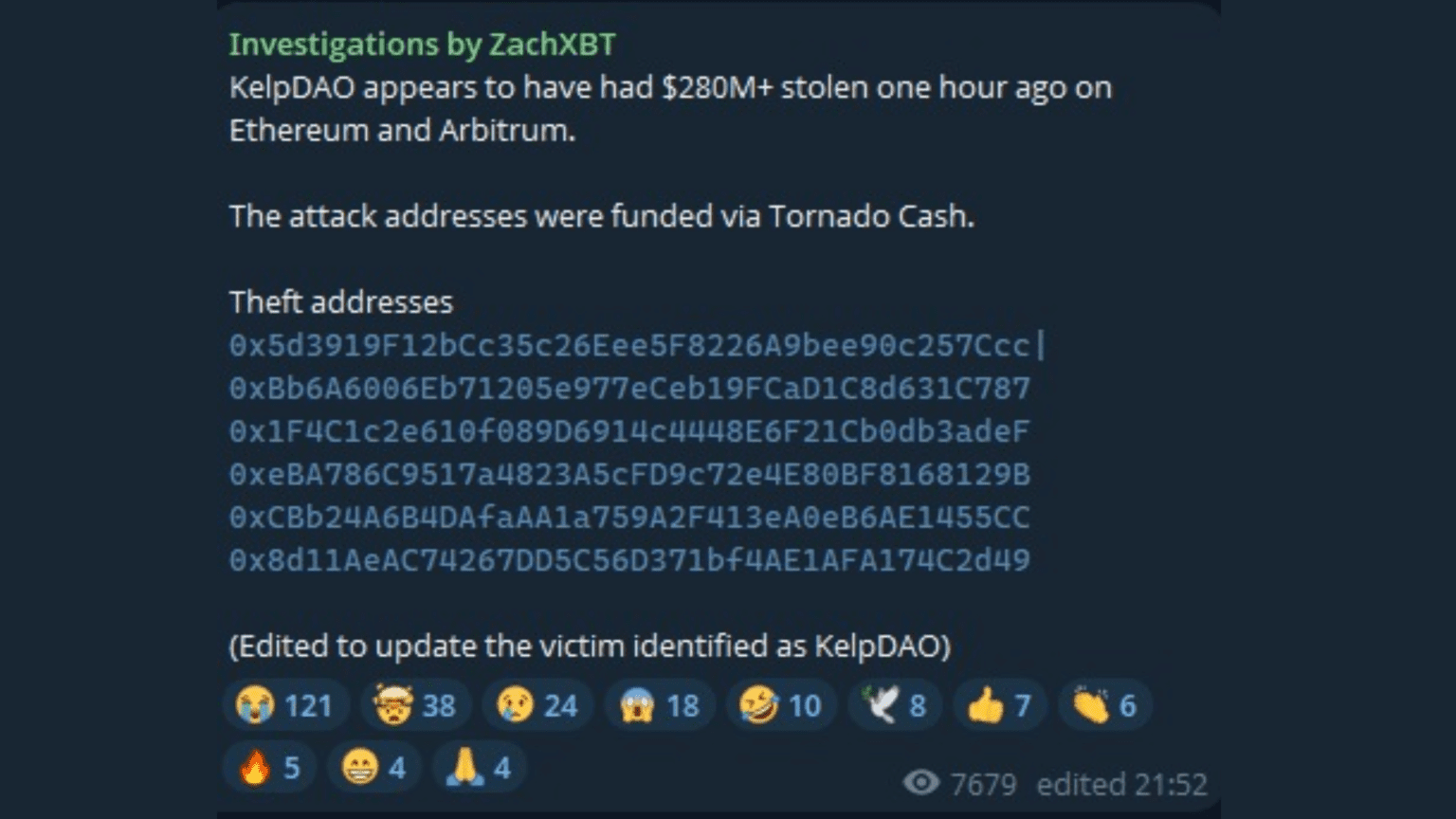 NEW: @zachxbt SAYS “A VICTIM APPEARS TO HAVE HAD $280M+ STOLEN FROM VARIOUS DEFI PROTOCOLS ONE HOUR AGO ON ETHEREUM AND ARBITRUM” SOURCE: https://t.co/QE58mabEqM https://t.co/TTzfAuVM7l
