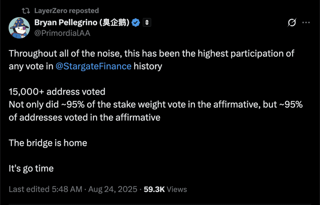 The deal folds Stargate back into its original creator. It also shuts down its DAO, unifies governance under LayerZero, and kills the STG token in favor of ZRO.