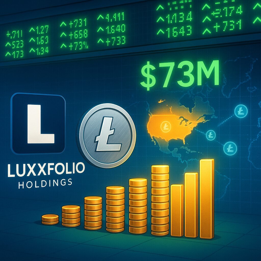 Luxxfolio plans to raise $73M to expand its Litecoin treasury strategy, aiming for 1M LTC by 2026 and signaling bold institutional adoption.